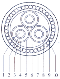 YJV33 UJLV33 | 銅芯或鋁芯交聯(lián)聚乙烯J緣細鋼絲鎧裝聚乙烯護套電力電纜 |
