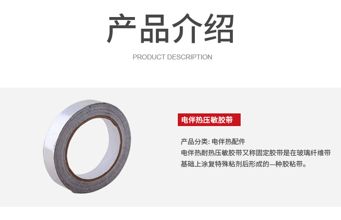 作用是輔助固定和密封防護,常用來固定鋁箔膠帶的搭接處、填補縫隙,或在伴熱帶安裝完成后,對局部位置進行加固;部分耐溫型壓敏膠帶還可用于低溫環境下的臨時固定,兼具一定的絕緣、防潮效果。